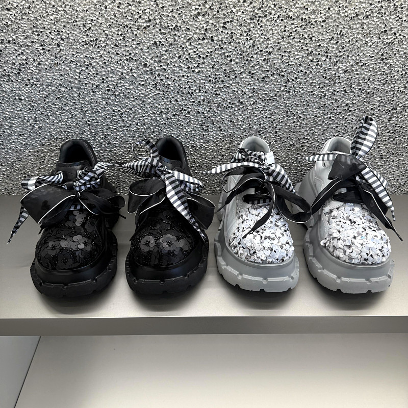 欧洲站小个子厚底休闲女鞋2026年春季新款欧货真皮时尚亮片松糕鞋