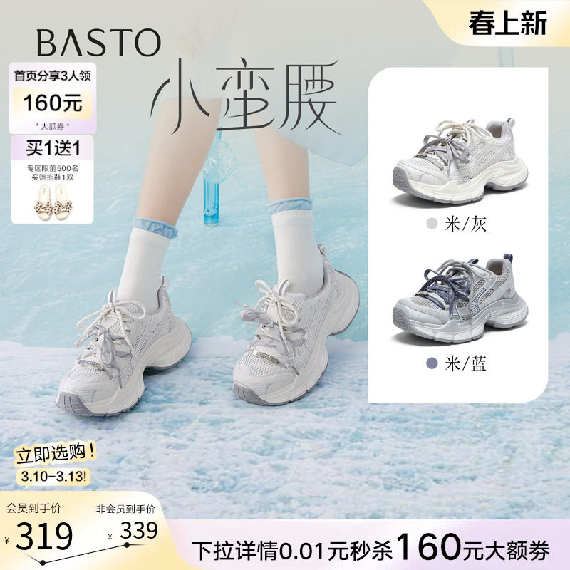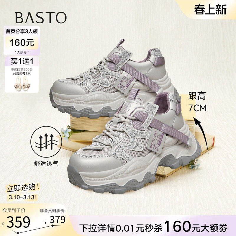百思图2026春季商场新款厚底增高网面老爹鞋运动休闲女鞋B6098AM6