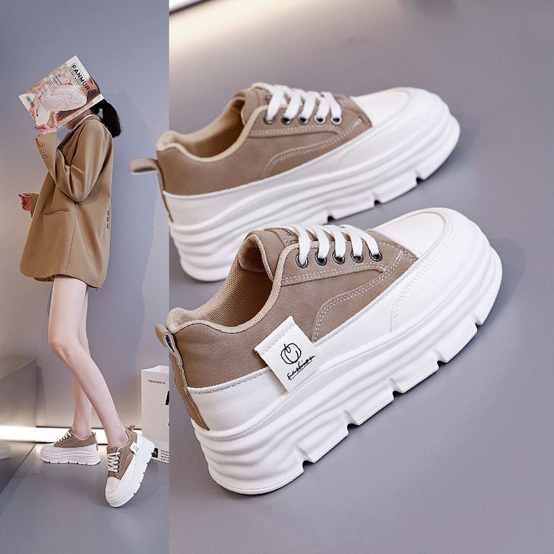 大东休闲女鞋2026春季新款时尚厚底增高老爹鞋系带圆头运动鞋0358
