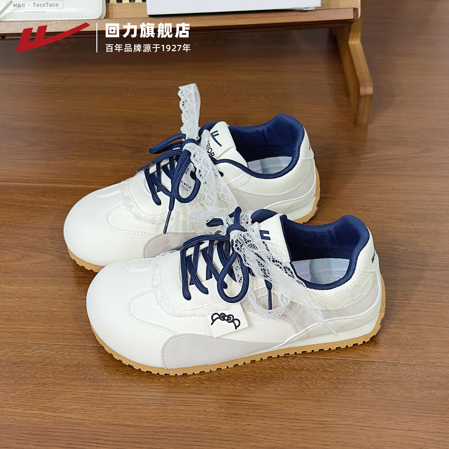 回力德训鞋女2026春季新款舒适软萌小白鞋蕾丝鞋带休闲女鞋运动鞋