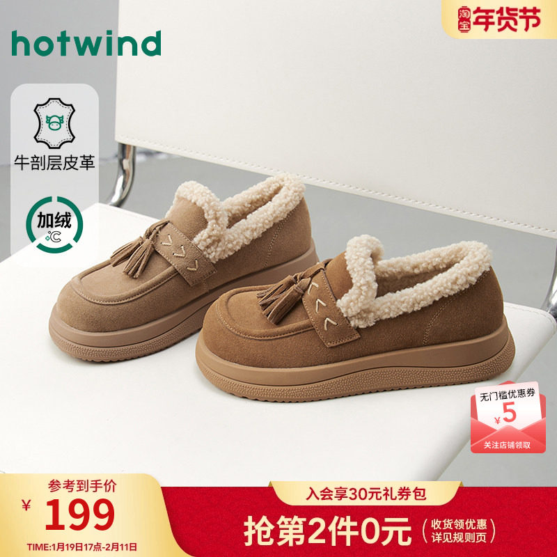 热风加绒乐福鞋女款2025年冬季新款棕色复古毛毛鞋百搭休闲女鞋子