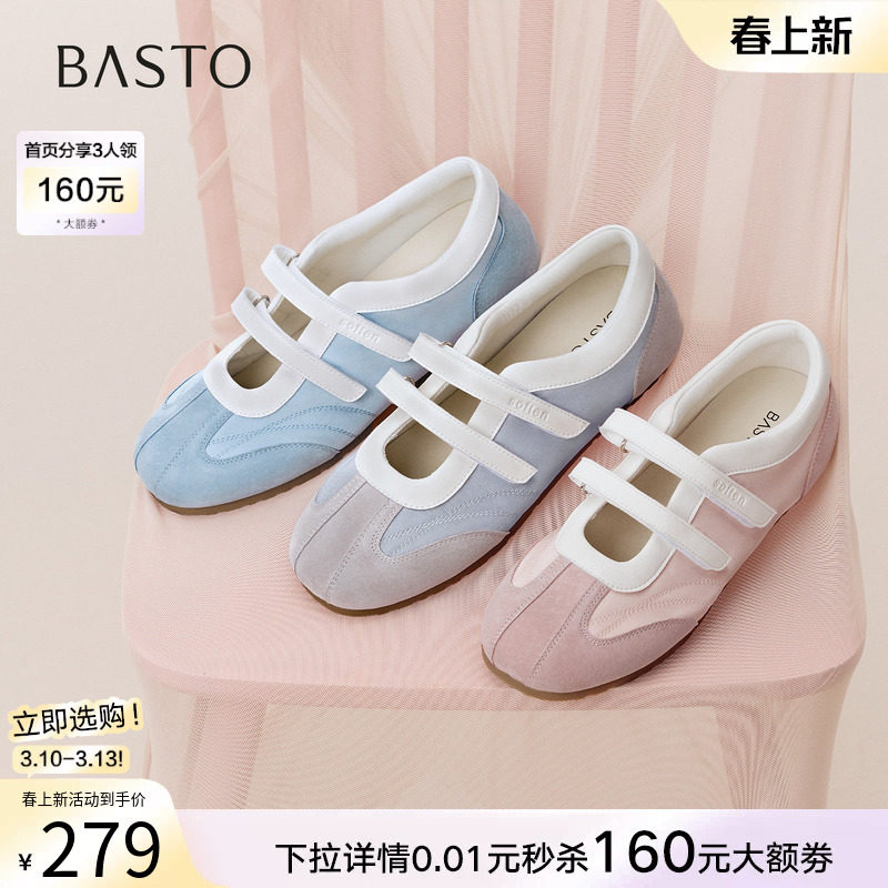 百思图秋季新款运动玛丽珍芭蕾单鞋平底运动休闲女鞋A1942CQ5