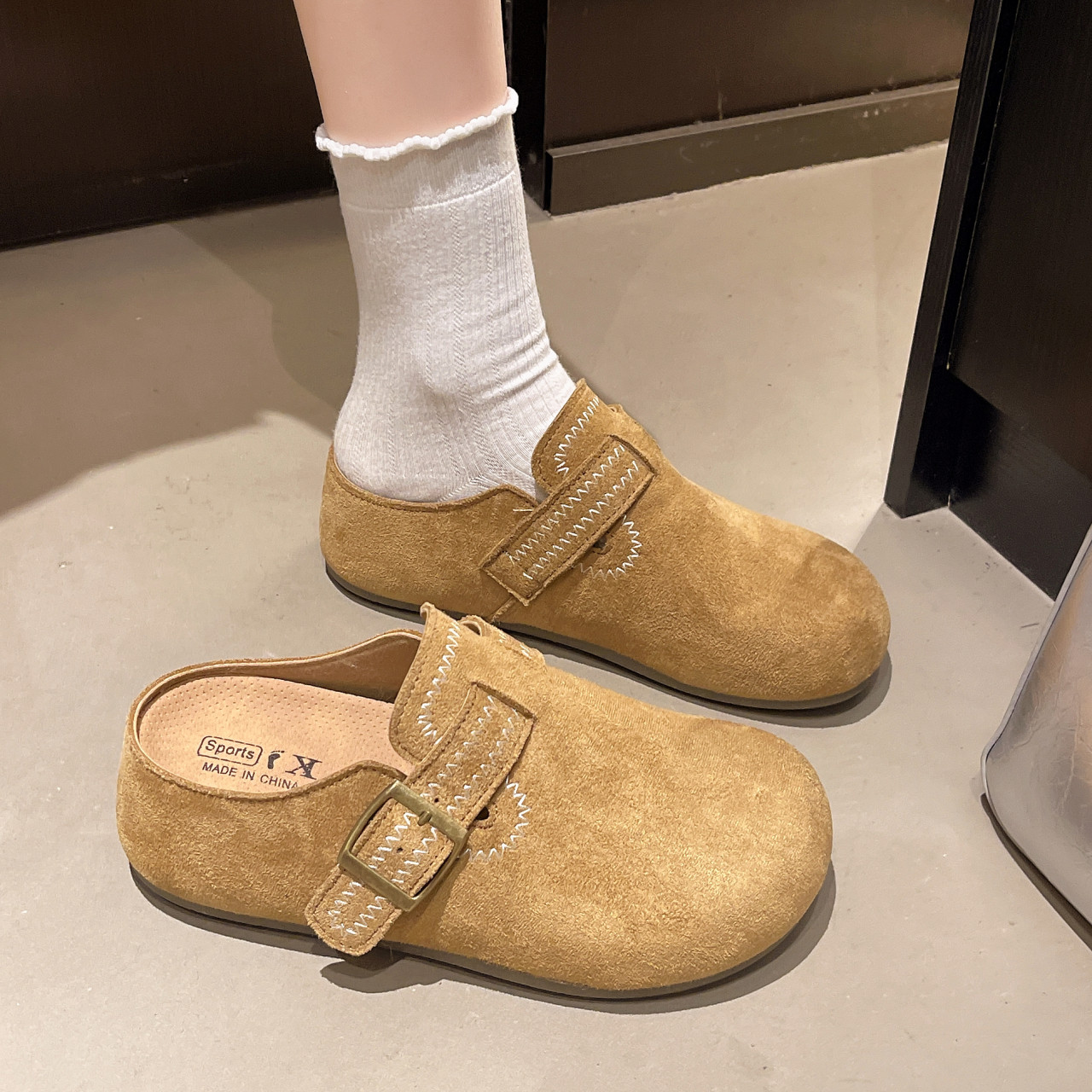 2025年秋季内女外穿两穿韩版时尚包头勃肯一脚蹬半拖休闲女鞋