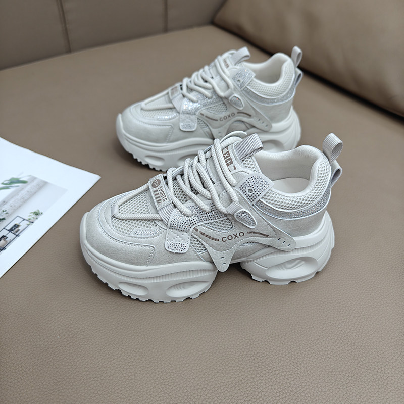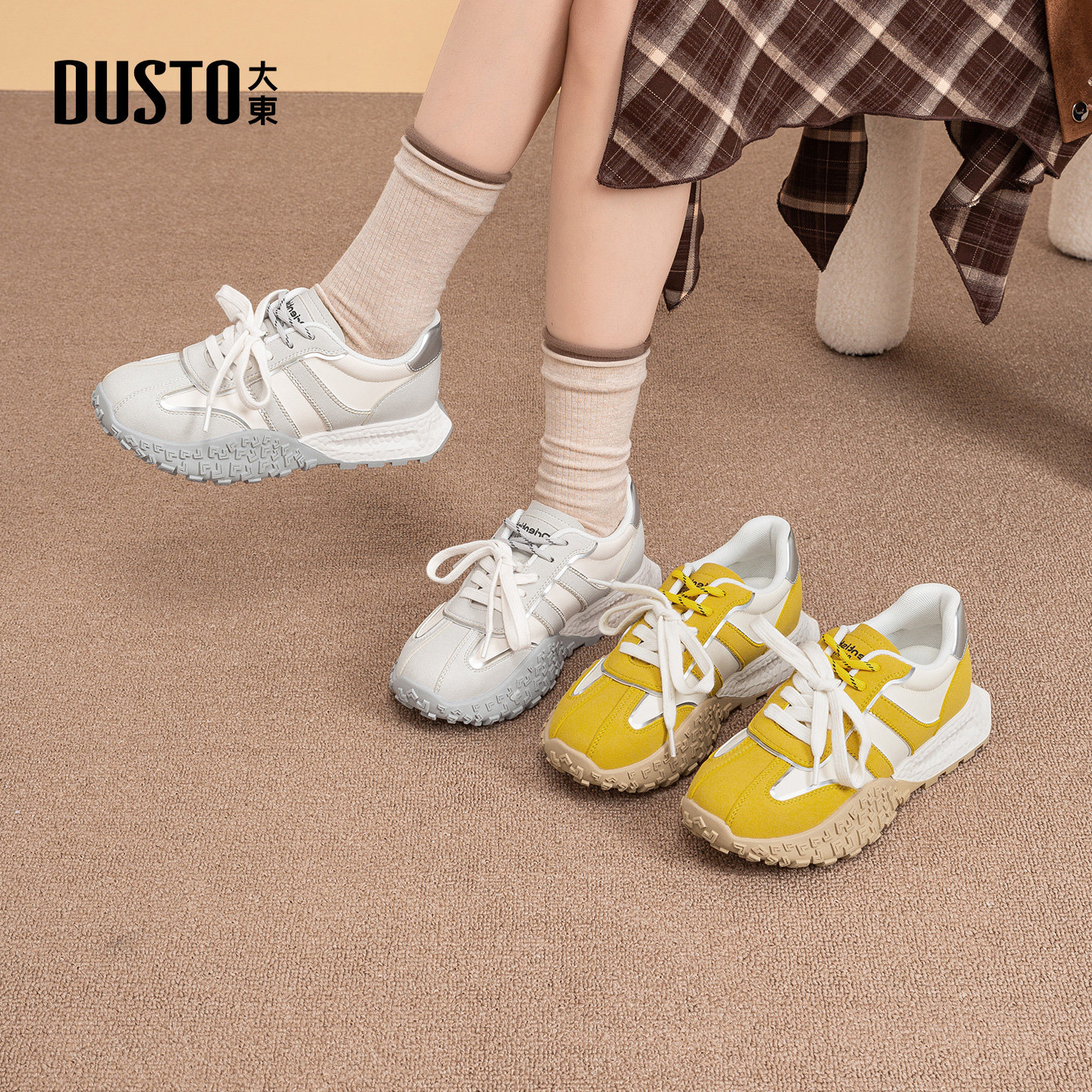 大东休闲女鞋2025秋冬新款时尚厚底增高老爹鞋系带圆头运动鞋0358