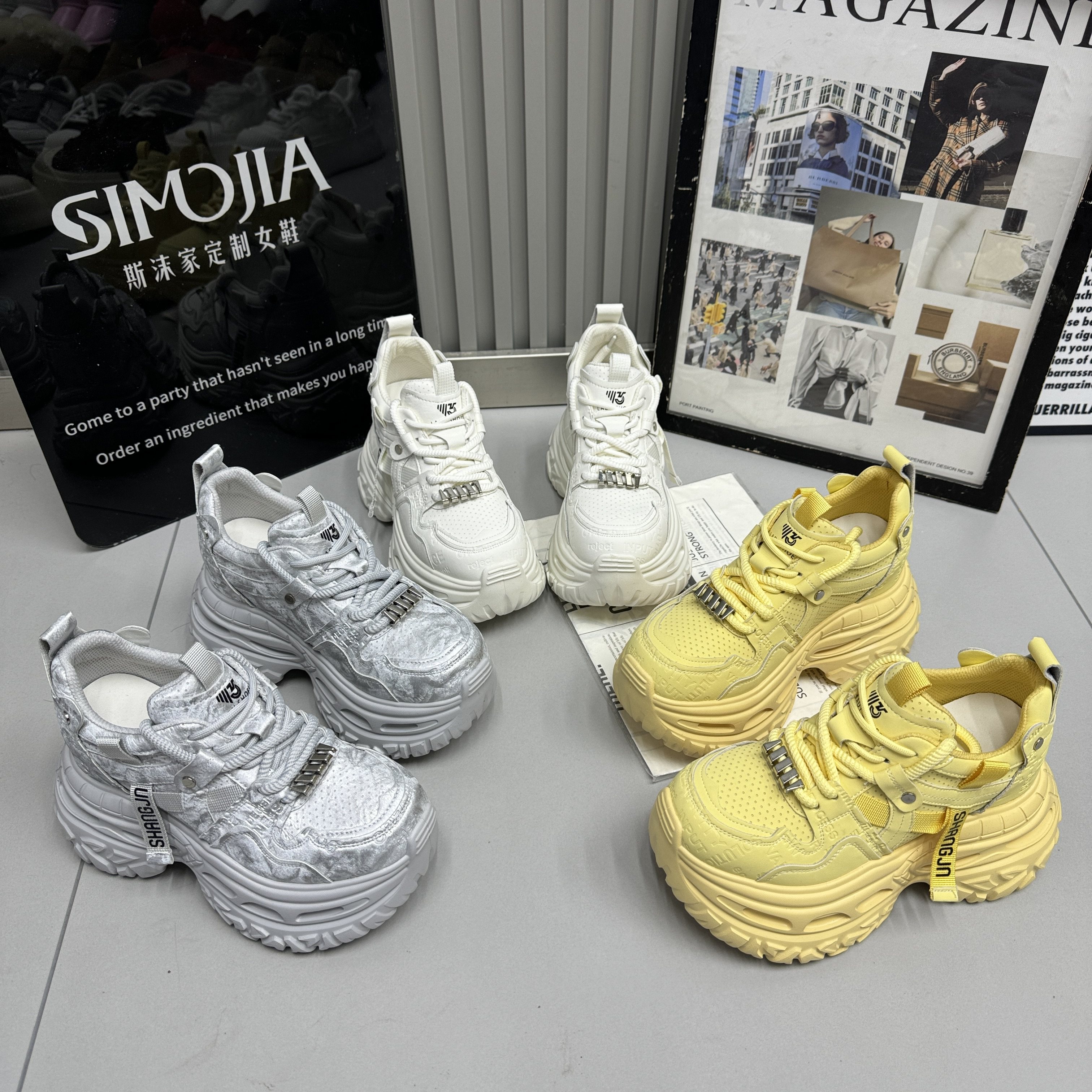 2026春季新款真皮厚底小个子增高百搭休闲女鞋老爹鞋运动鞋单鞋潮