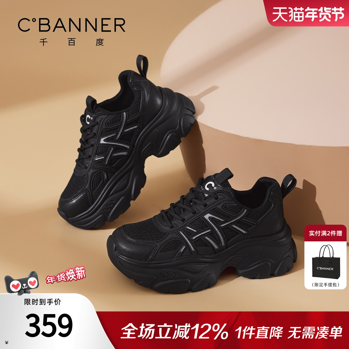 千百度厚底老爹鞋女2026春季新款百搭轻便休闲女鞋网面增高运动鞋