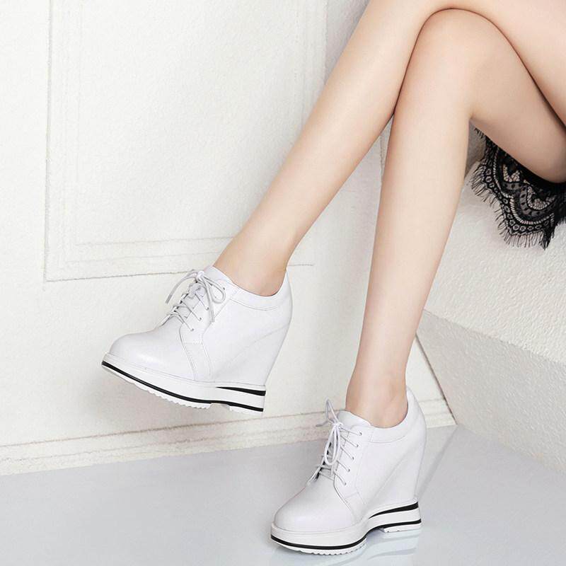 12CM真皮内增高小白鞋女秋系带厚底坡跟单鞋松糕底百搭休闲女鞋子