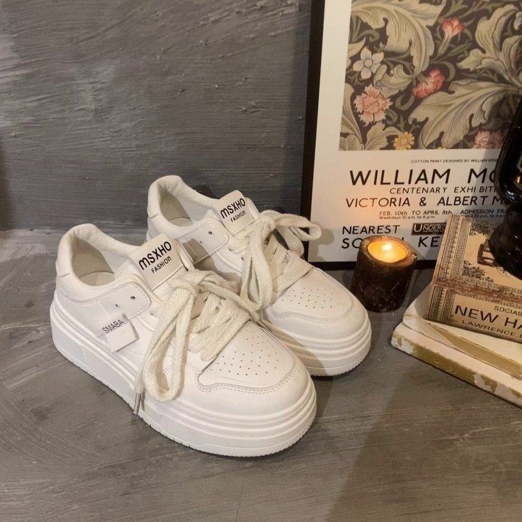 厚底小白鞋女春秋新款休闲女鞋小个子增高百搭运动板鞋学生面包鞋