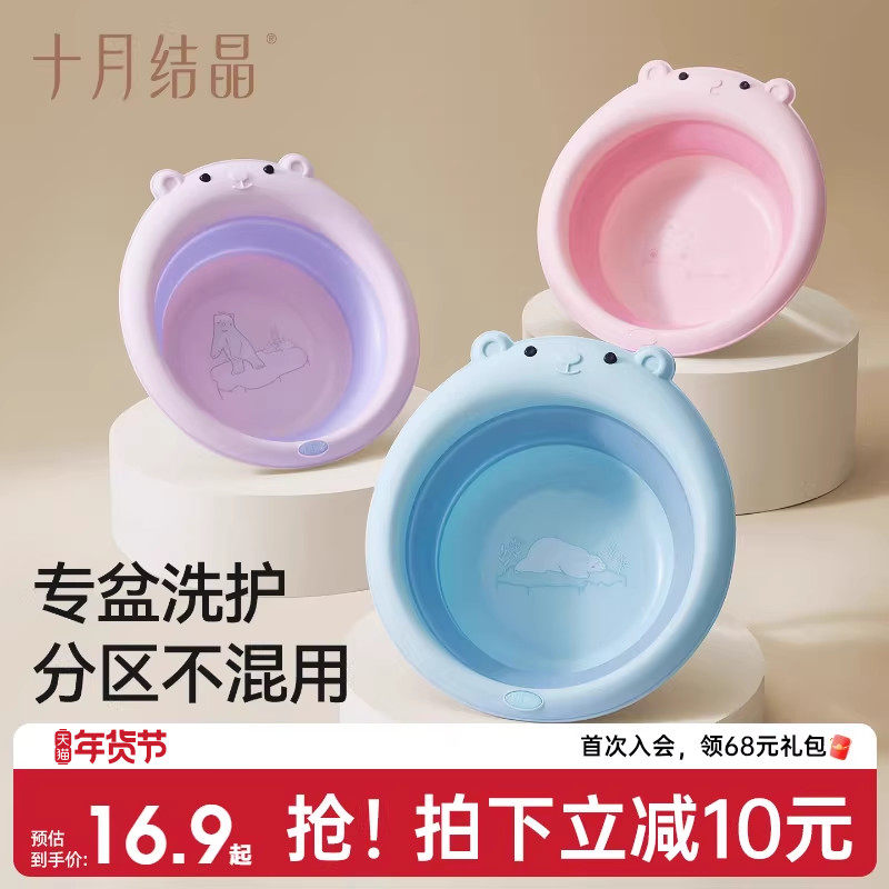 婴儿可折叠洗脸盆专用洗屁屁股新生儿童初生宝宝家用小盆子三件套