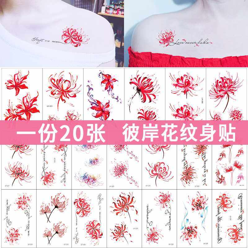 彼岸花纹身贴防水 女 持久性感网红仿真锁骨纹身贴彼岸花地狱少女