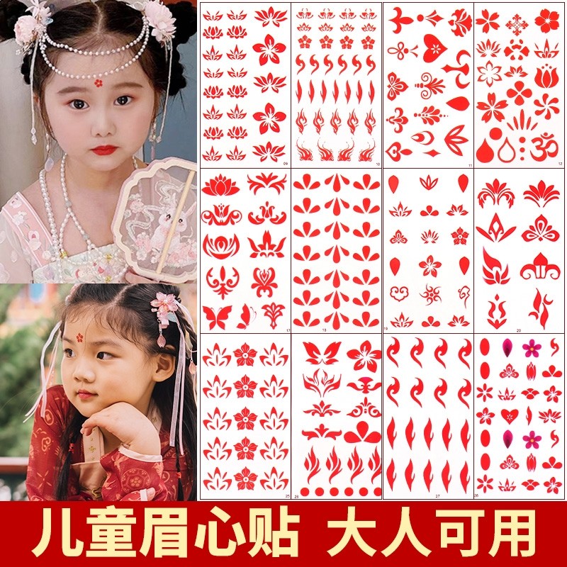 眉心贴儿童额头花钿印花女童六一国风古风汉服纹身贴防水持久贴纸
