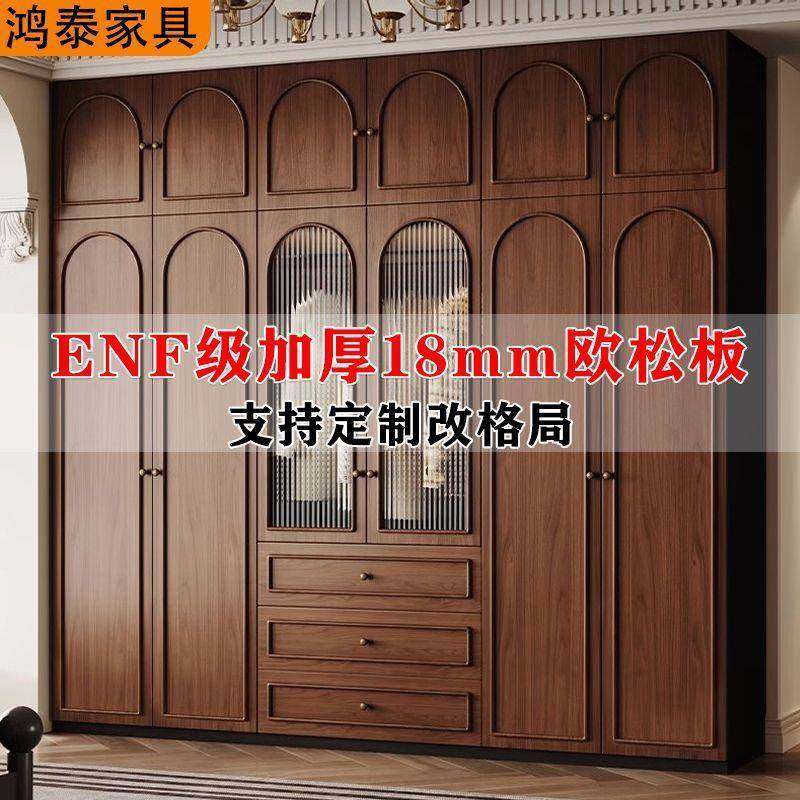 田园风实木衣柜2025新款储物柜卧室大容量免拉手分段式大衣橱