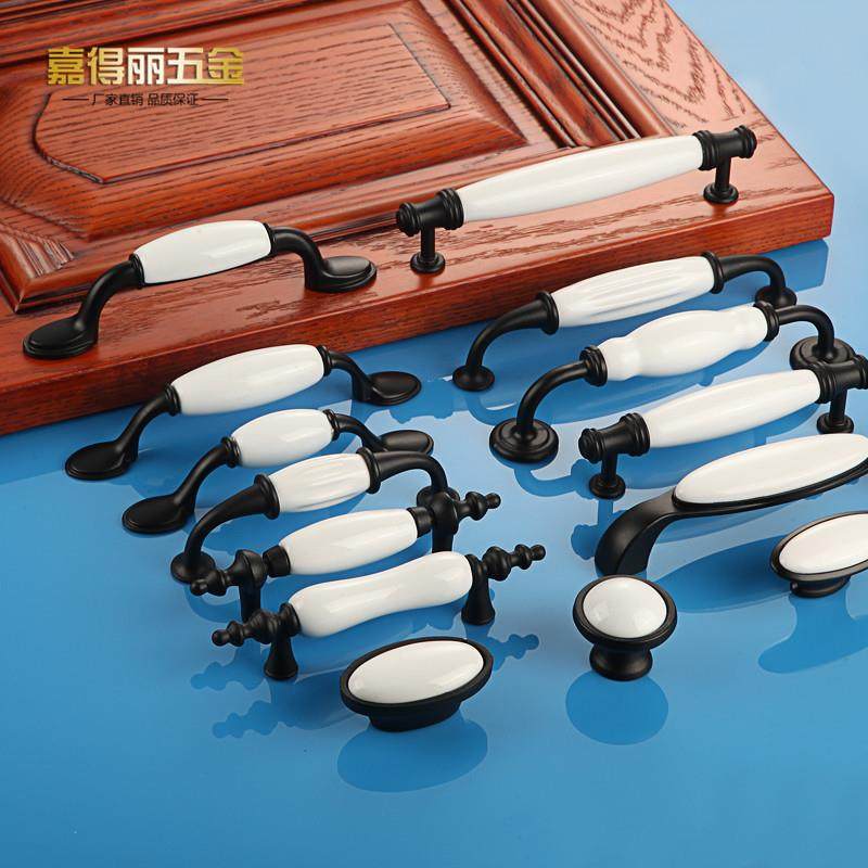 黑白陶瓷拉手 简约欧式橱柜拉手 美式田园衣柜门把手圆形抽屉拉手
