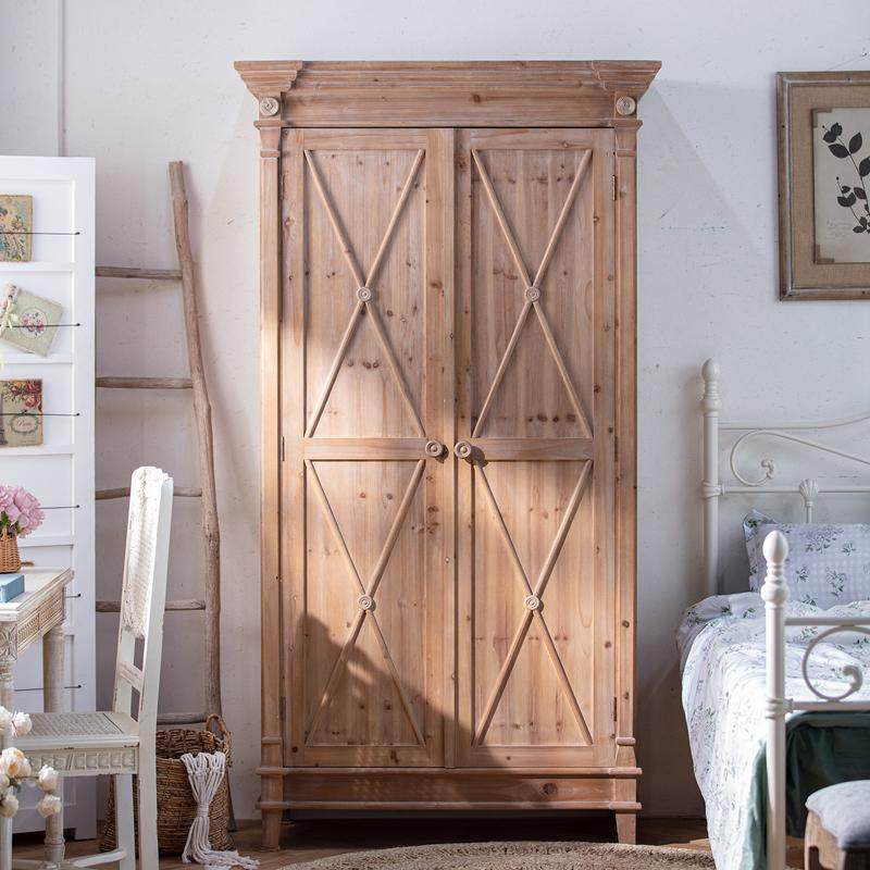 简约实木独立衣橱美式乡村田园复古卧室双开门衣柜储物收纳大柜子