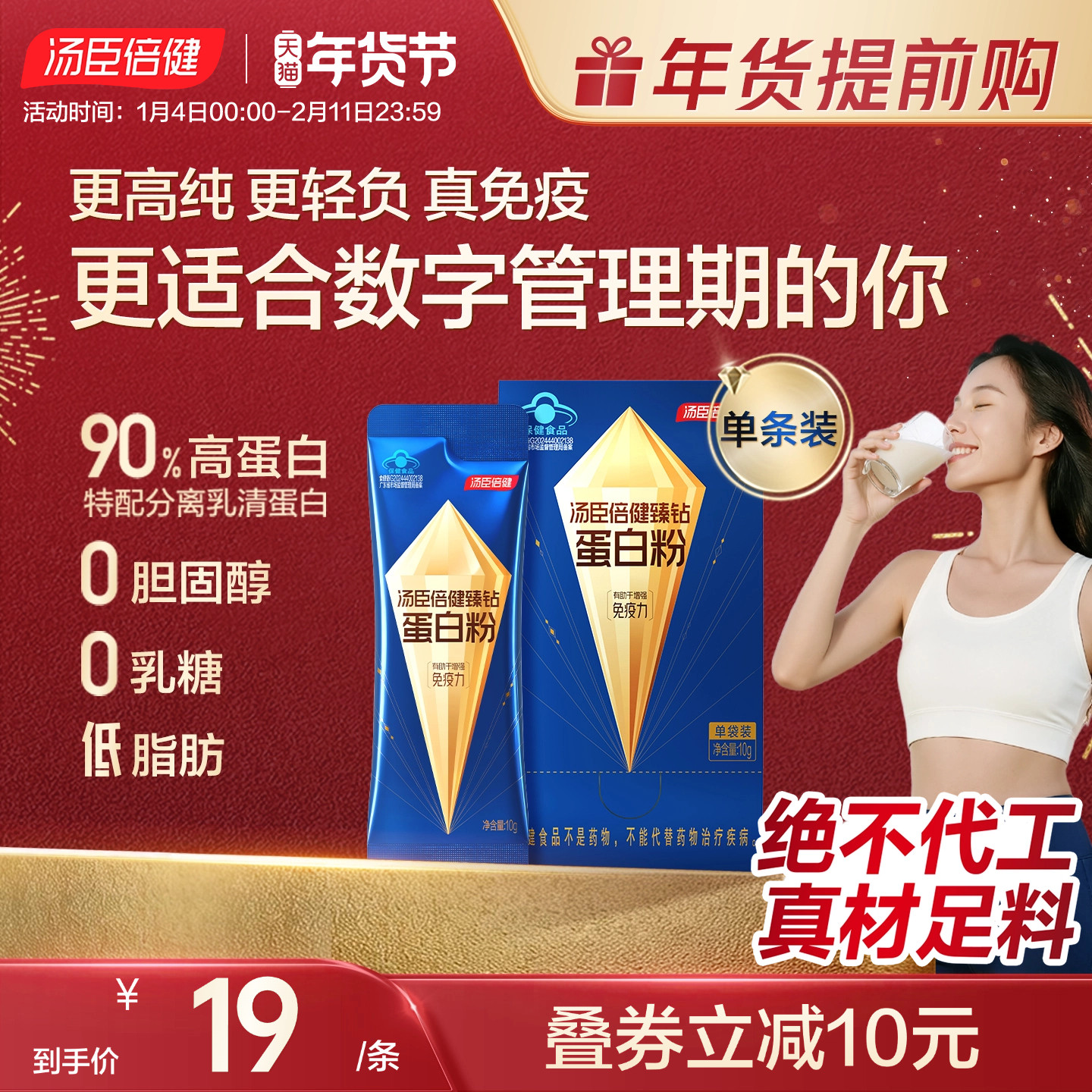 汤臣倍健旗舰臻钻蛋白粉便携单袋女性低脂肪增强免疫力乳清蛋白质