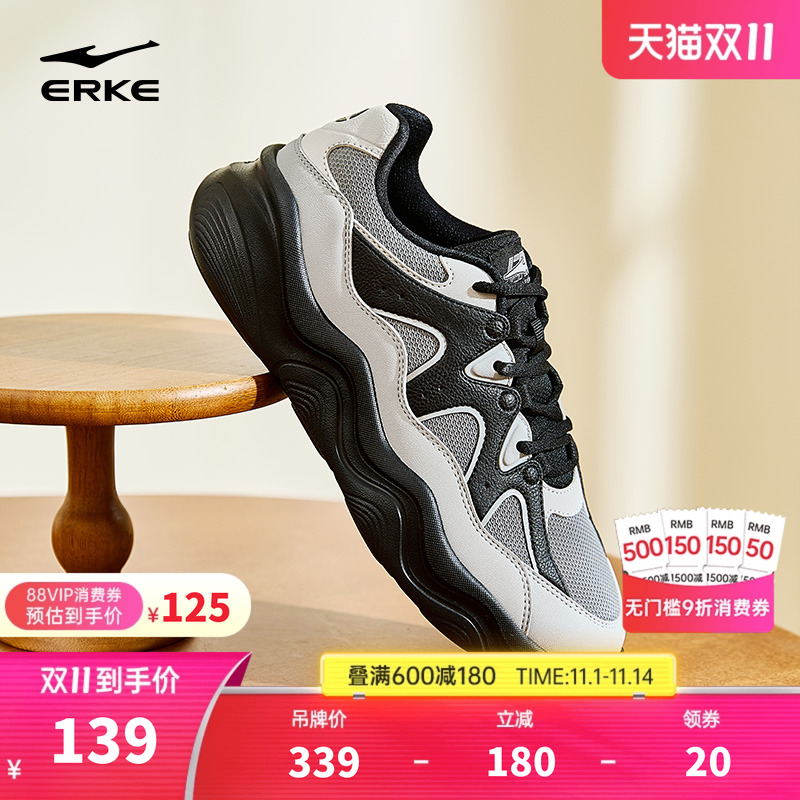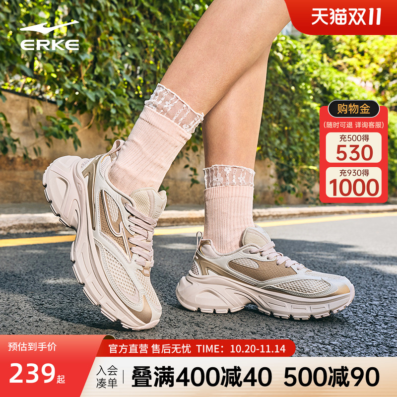 鸿星尔克新款运动鞋情侣秋季百搭休闲鞋厚底网面运动鞋老爹鞋透气