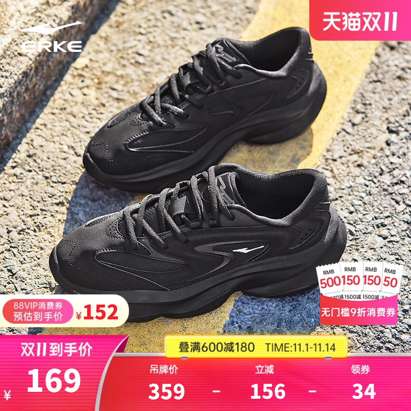 鸿星尔克女鞋运动鞋秋季黑色老爹鞋轻便厚底增高休闲跑步鞋子女款