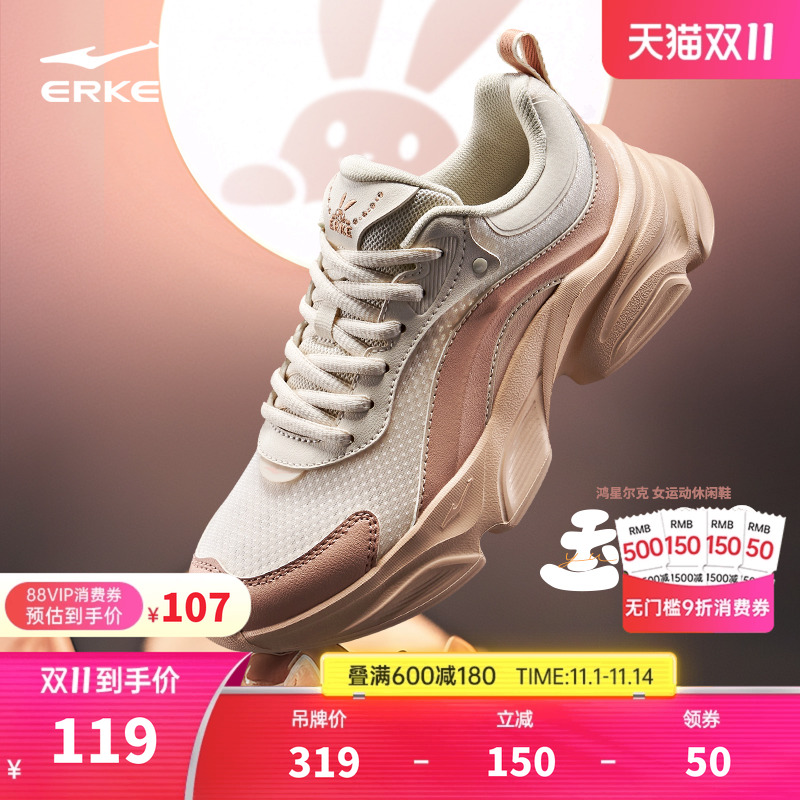 鸿星尔克逍游2女鞋秋冬新款休闲鞋软底增高鞋子运动鞋百搭老爹鞋