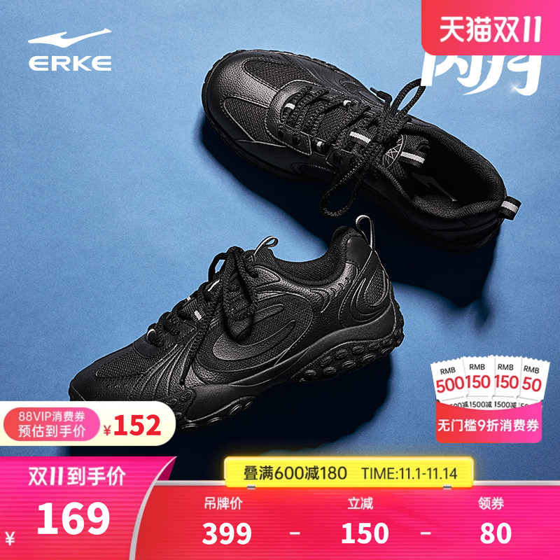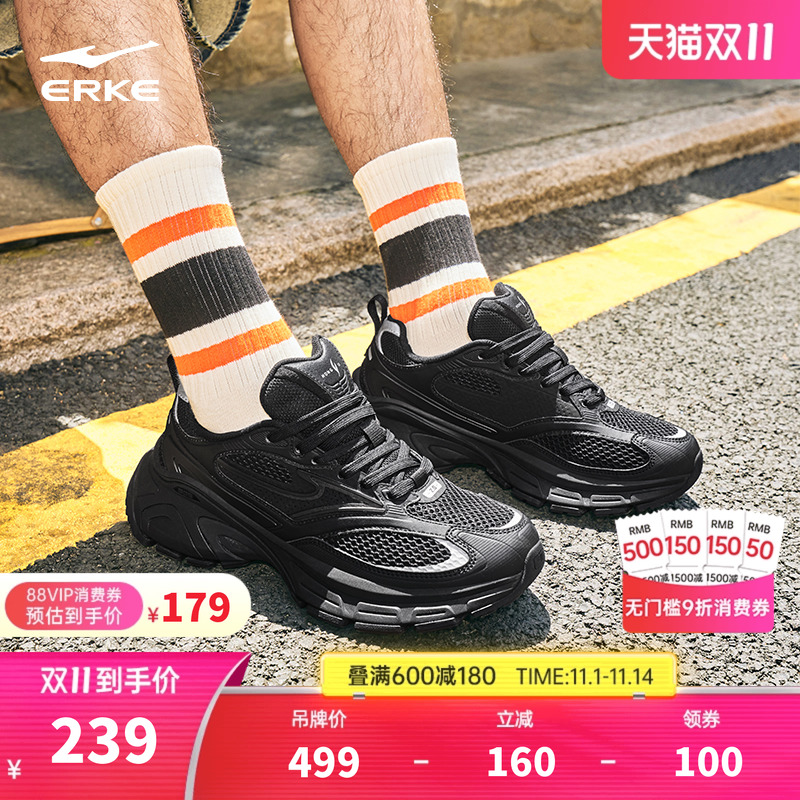 鸿星尔克男鞋跑步鞋黑色老爹鞋2025新款厚底增高休闲鞋男士运动鞋
