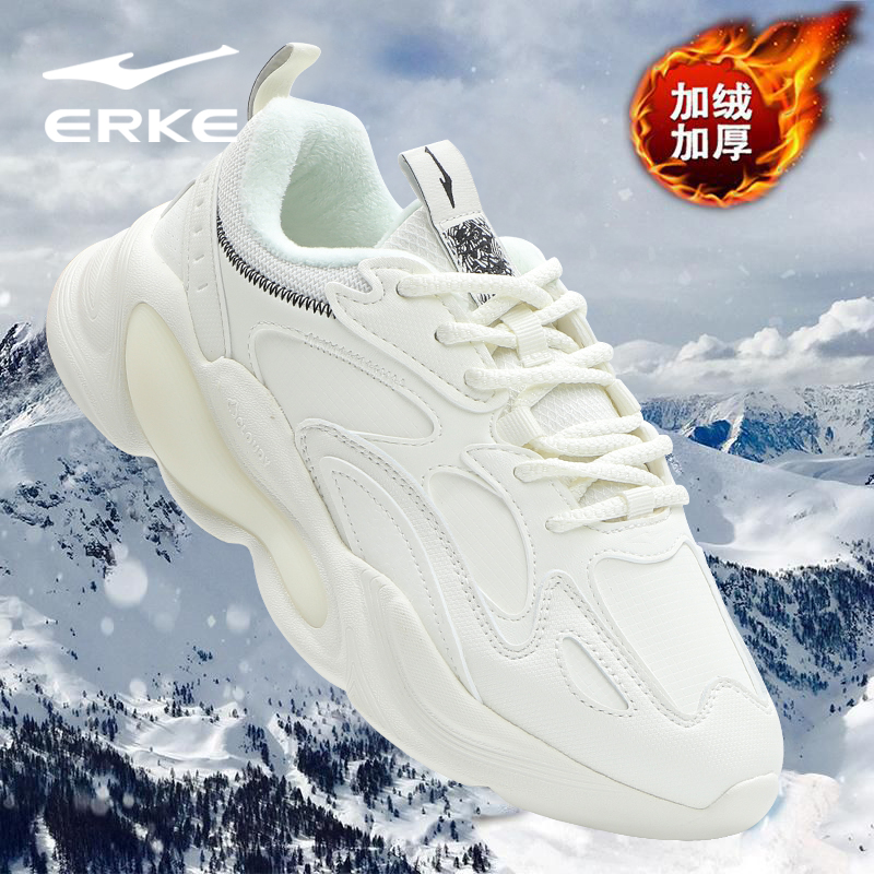 鸿星尔克女鞋休闲跑步鞋冬季加绒保暖防滑鞋子女皮面防水运动鞋女