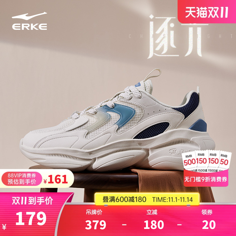 鸿星尔克逐光情侣运动鞋秋季新款透气网面增高休闲老爹鞋面包鞋男