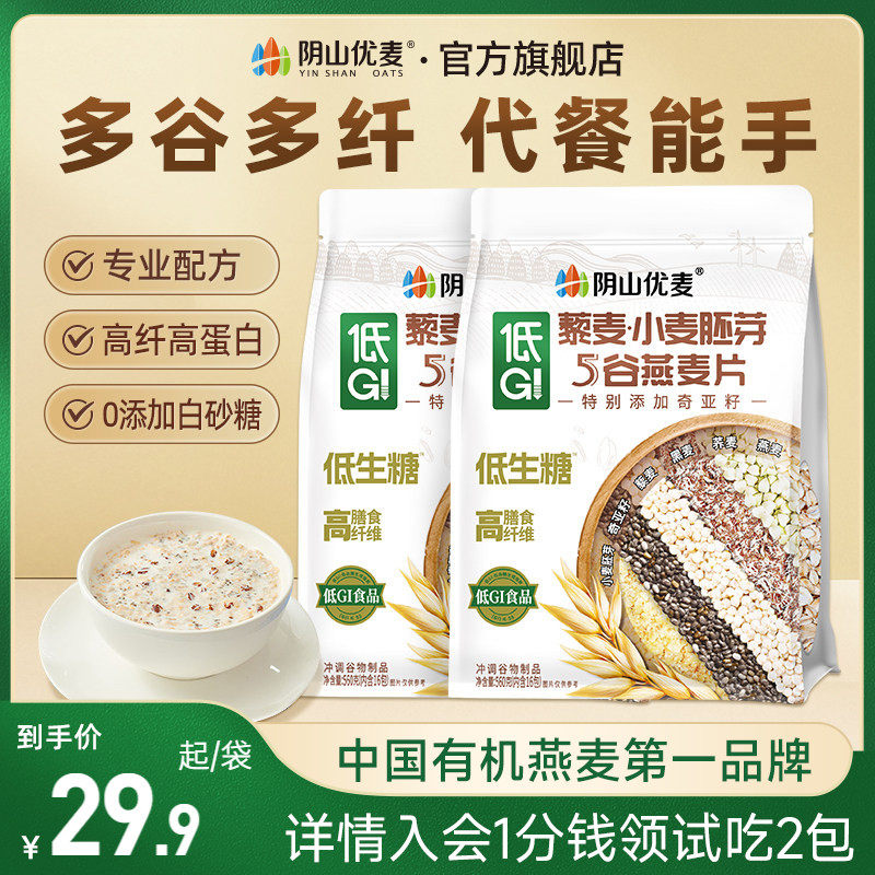 阴山优麦低GI藜麦小麦胚芽纯燕麦片营养早餐代餐冲饮即食裸燕麦片