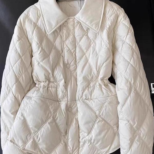 复古菱格翻领收腰轻薄短款外套女秋冬2025新款宽松小个子羽绒棉服