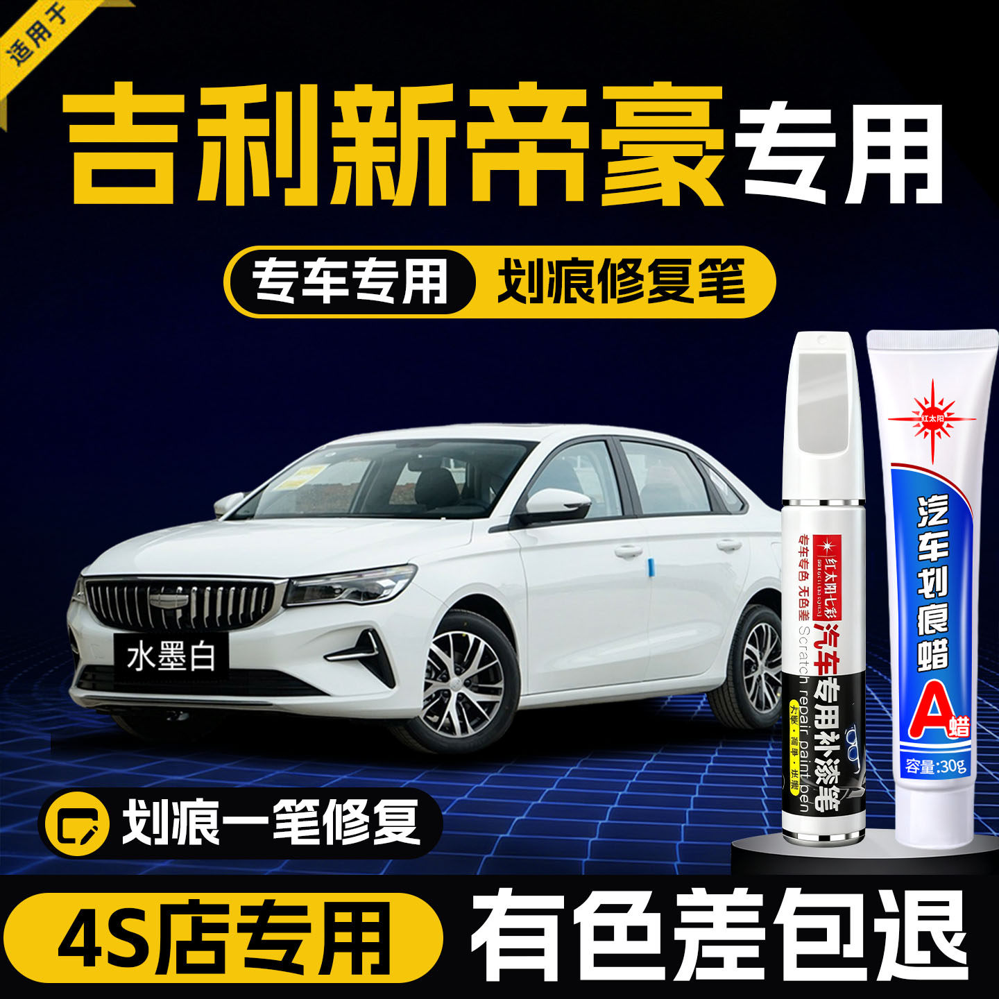 适用吉利帝豪补漆笔冰晶白月影蓝车漆划痕修复车漆神器墨玉黑漆笔