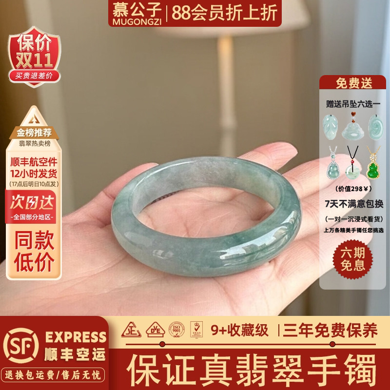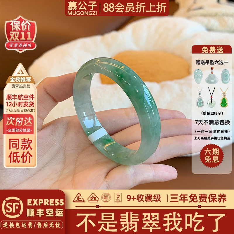 慕公子“流风余韵”高端缅甸翡翠冰种飘花翡翠玉手镯子正品女处理