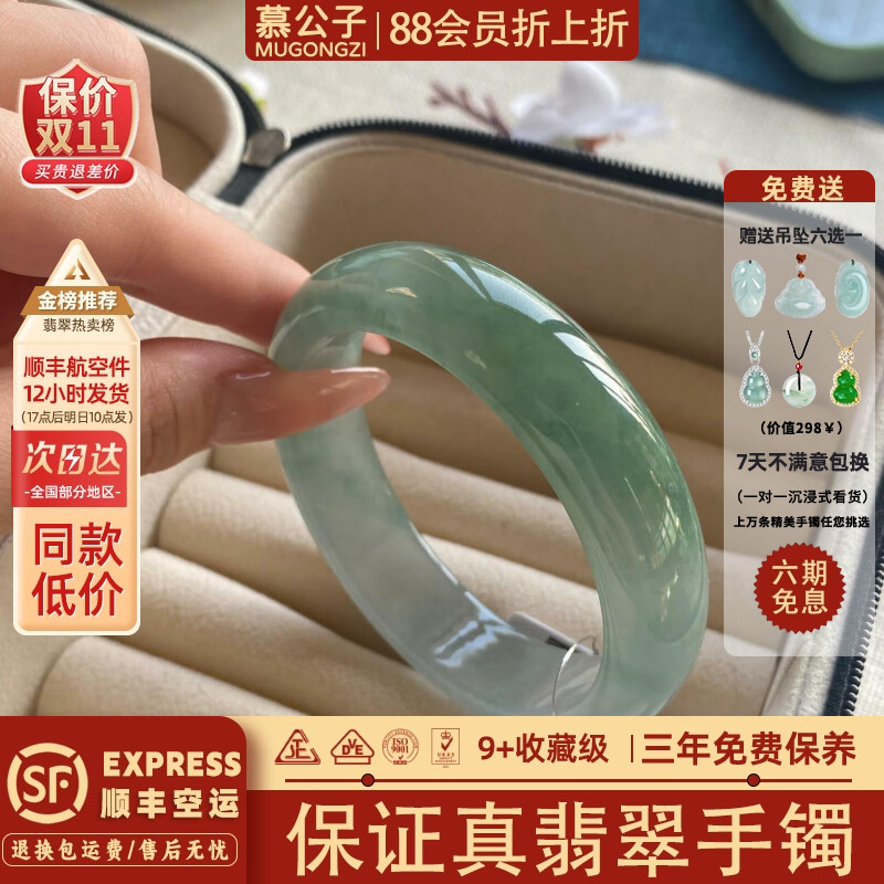 慕公子“天生尤物"缅甸高端翡翠冰种飘花玉手镯子正品步离镯处理