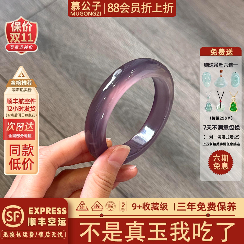慕公子"对月当歌"冰种帝王紫玉髓玛瑙玉手镯子缅甸高端翡翠平替