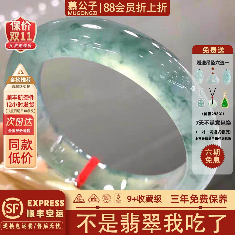 慕公子“诗情画意”缅甸高端翡翠高冰种飘花玉手镯子正品女款处理