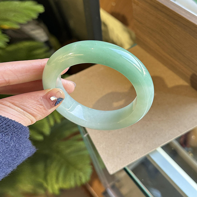 最相物“飘然系列”缅甸高冰种浅绿飘花玉手镯子女款高端翡翠处理