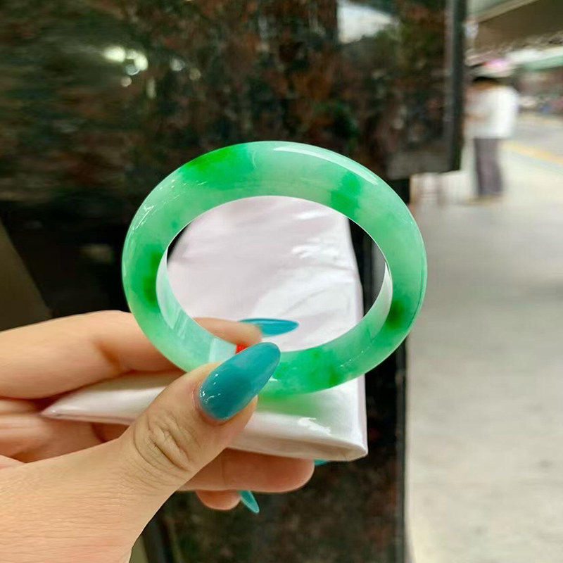 【缅甸直发】高端翡翠冰种飘花玉手镯子正品女真玉饰品步离镯处理