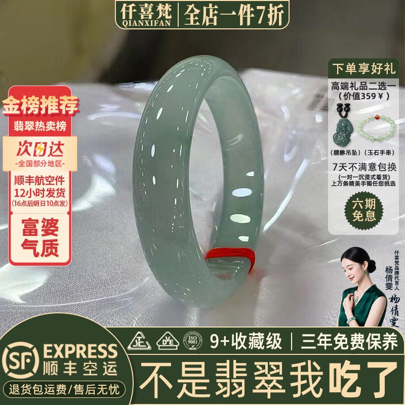 仟喜梵【明星同款】缅甸高端翡翠玉手镯子女款冰飘花轮胎正品处理
