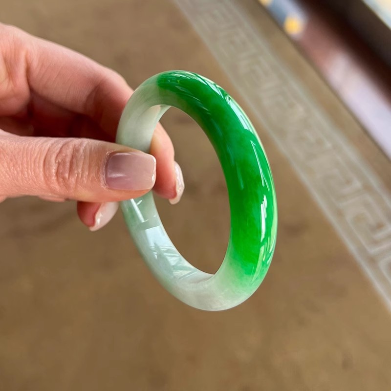 最相物"空青系列"缅甸冰透飘花翡翠玉镯子油青玉石女高端翡翠处理