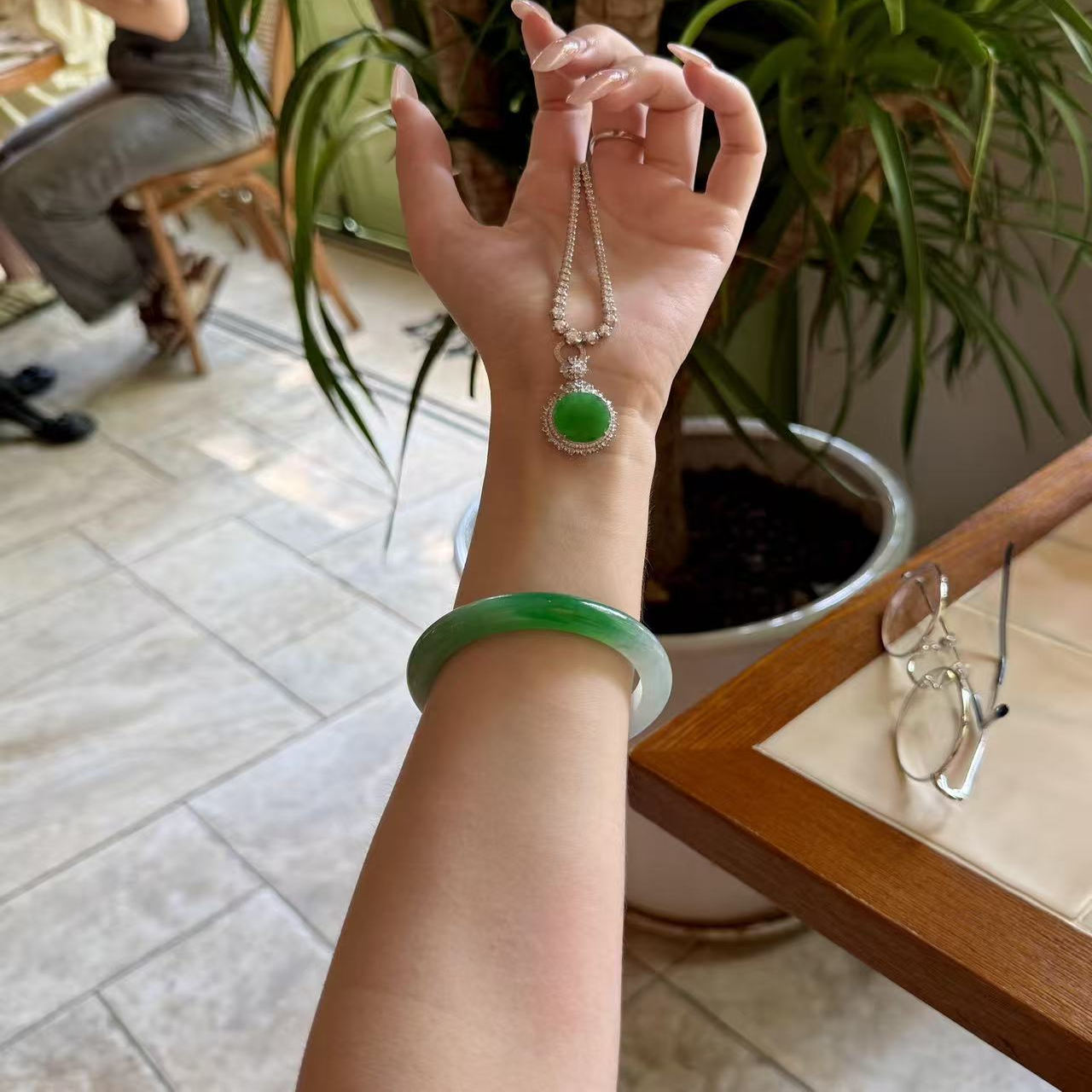 仟喜梵"念鹤空山" 高端翡翠平替天山翠玉手镯女款冰种飘花真玉镯