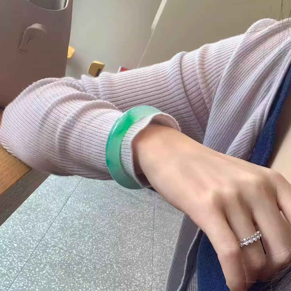 最相物"青黛系列"缅甸高端翡翠正品冰种浅绿飘花玉手镯子玉石处理