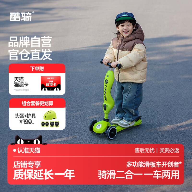 酷骑儿童滑板车二合一可坐可骑学步1到3岁6岁宝宝滑滑车小孩平衡
