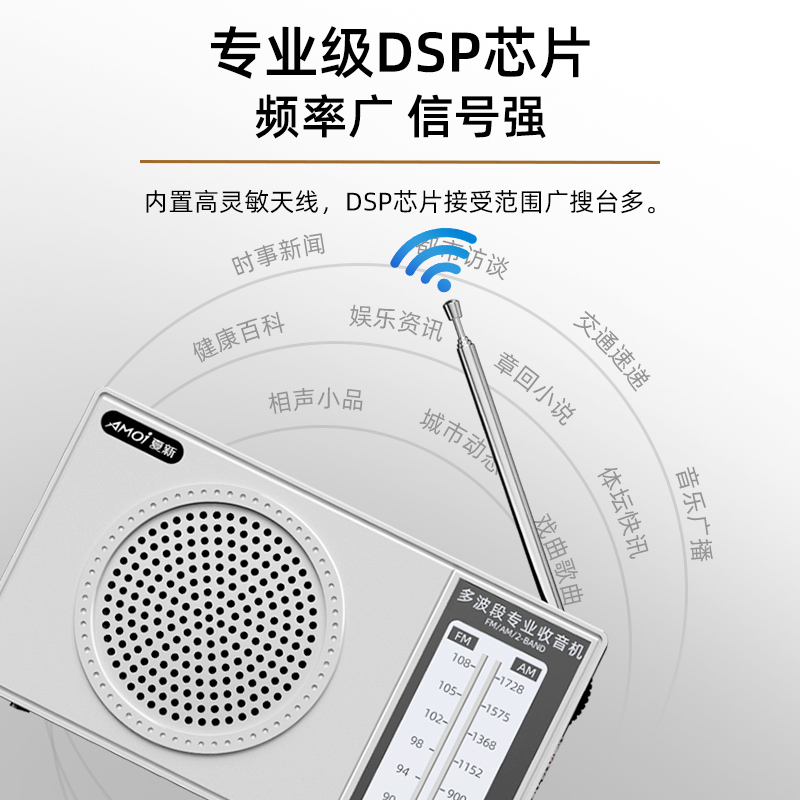 老年人专用半导体全波段超强信号新款便携式广播纯小收音机简单款