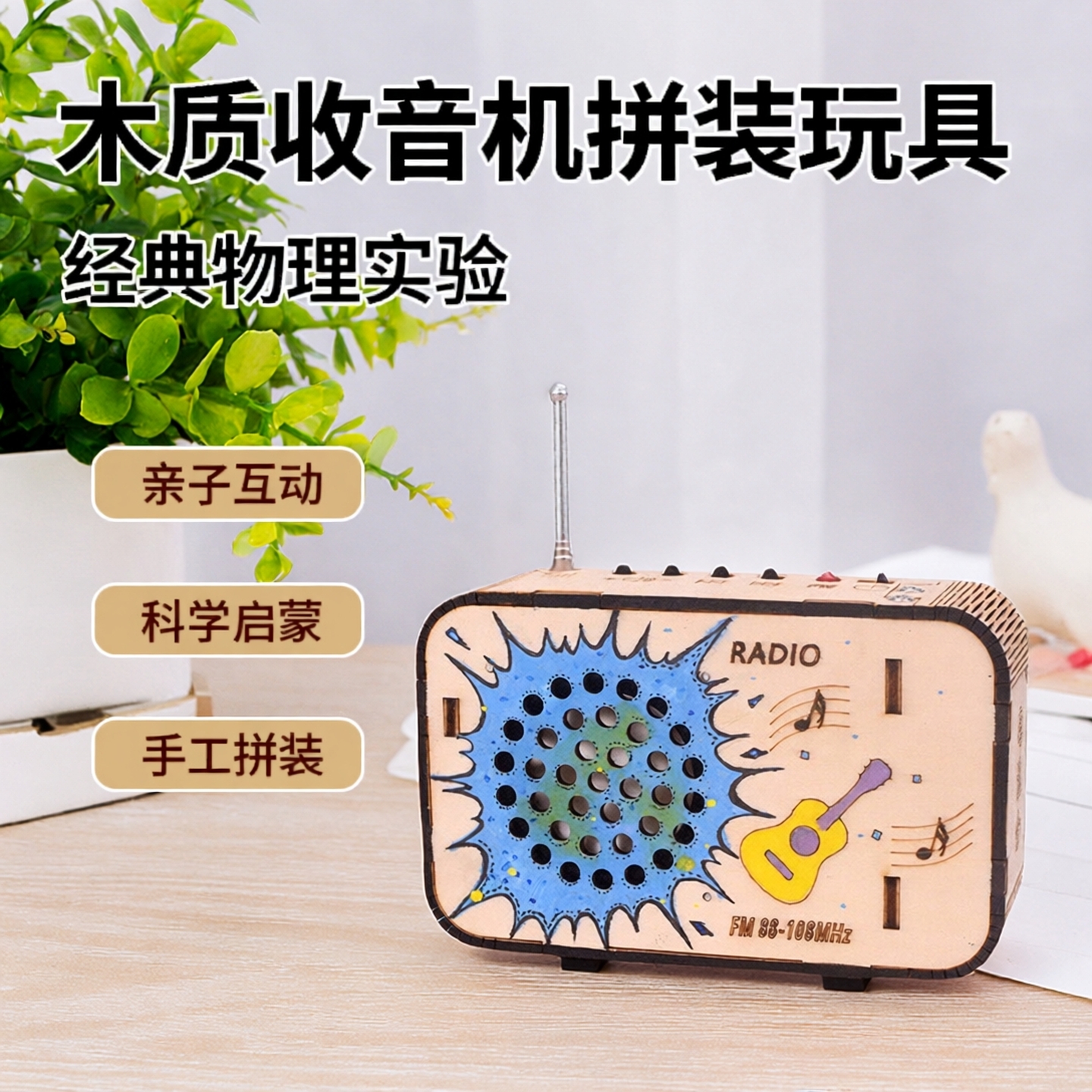 2024新款老式木质成人儿童科学实验DIY手工制作小收音机拼装玩具