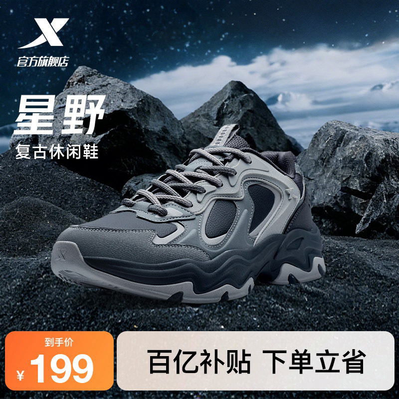 特步星野休闲鞋男鞋冬季新款厚底轻便运动鞋户外鞋复古老爹鞋女鞋
