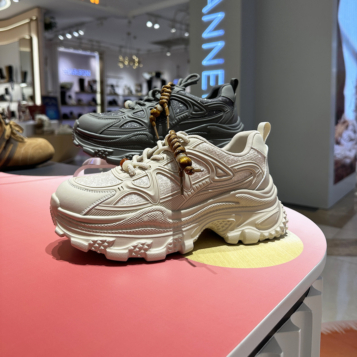千百度女鞋 休闲鞋运动鞋 2026新款网鞋老爹鞋厚底轻便 A26151107