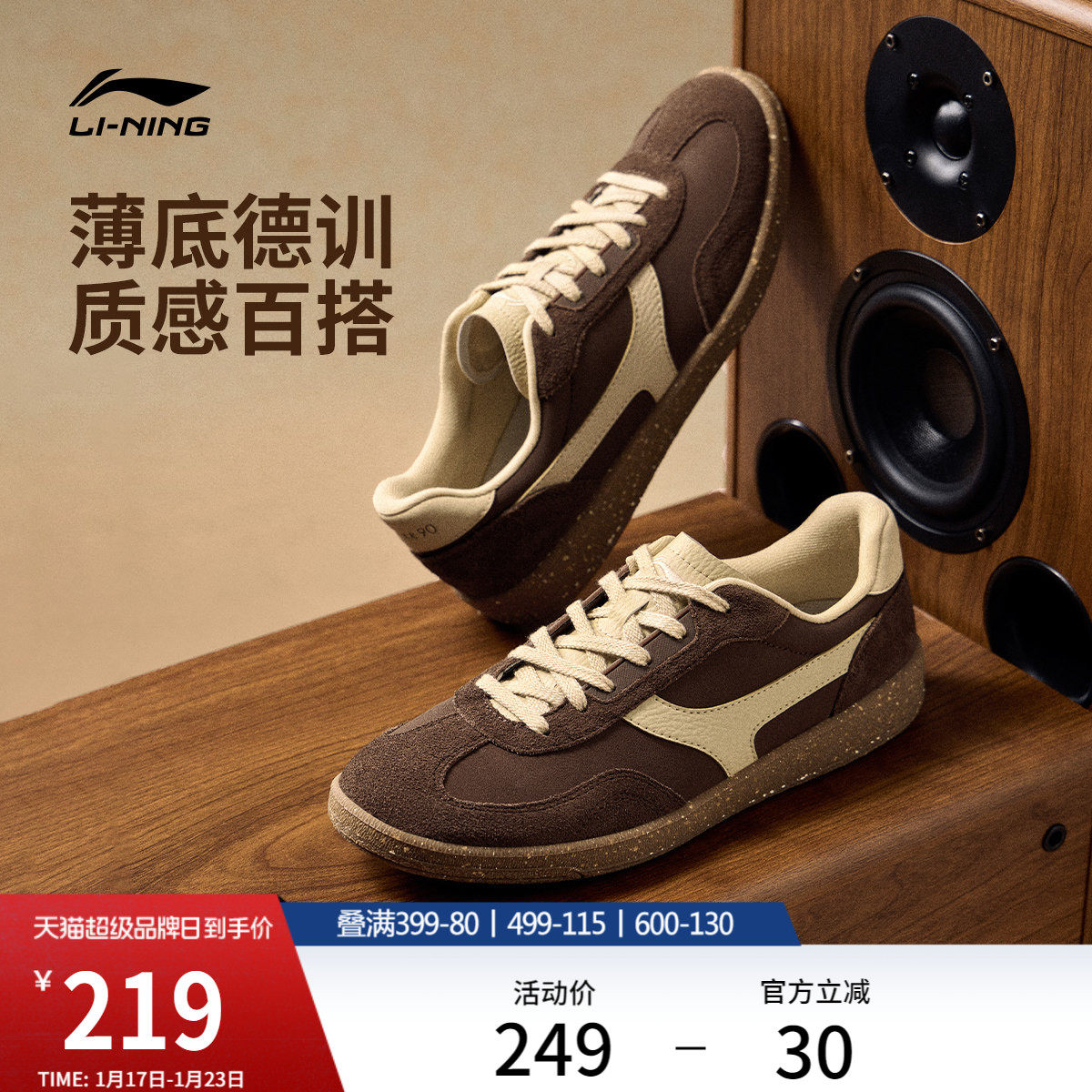 李宁云川2 | 休闲鞋女鞋冬季新款情侣薄底T头德训鞋板鞋运动鞋男