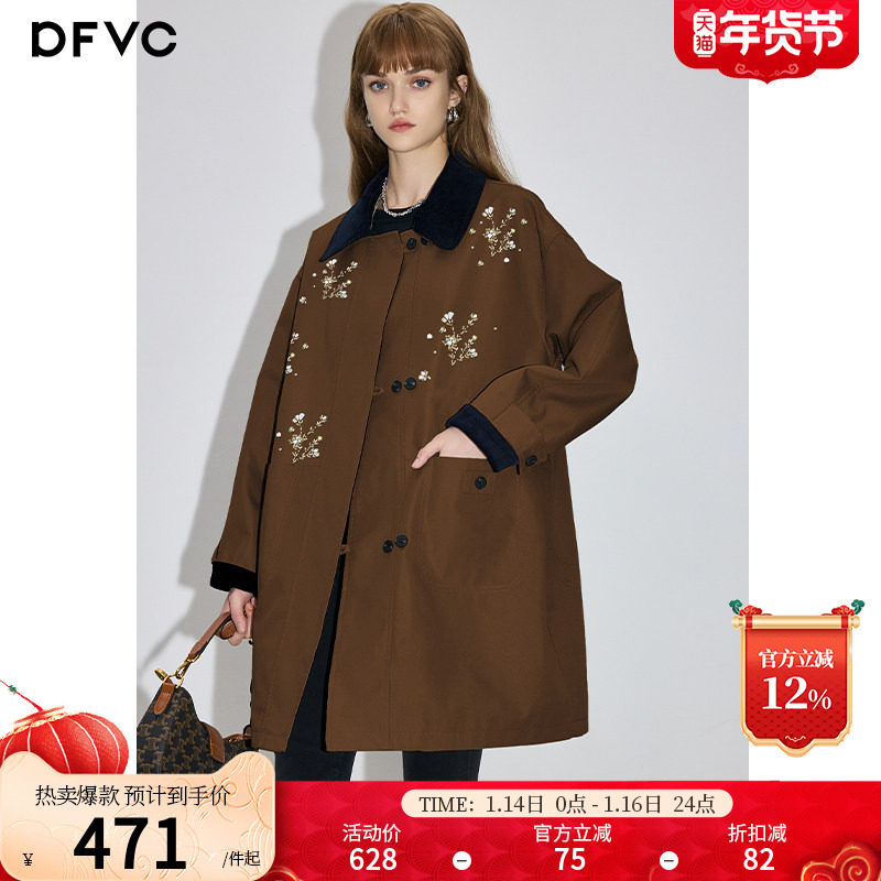 dfvc美拉德韩版中长款风衣外套女2026春季新款宽松显瘦小个子大衣