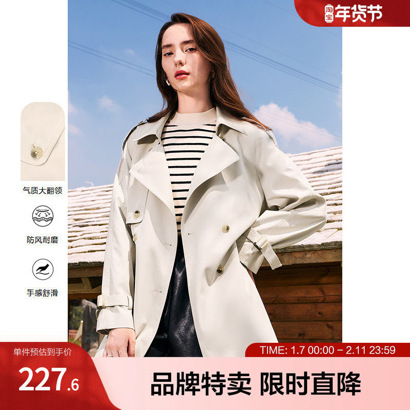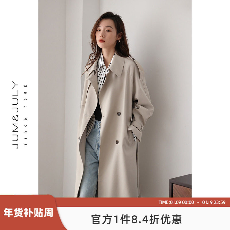 嘉茱莉新款春秋中长款风衣外套女英伦小个子上衣外套短款风衣休闲