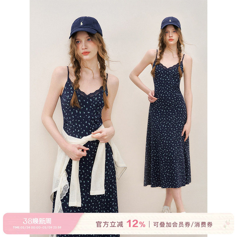 孔雪儿王楚然同款 Kroche 铃兰絮语 蕾丝花边碎花A字吊带连衣裙