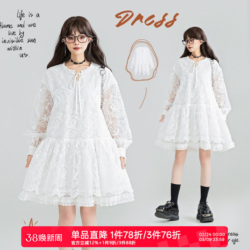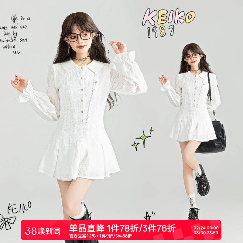 KEIKO [镂空勾花] 蕾丝花边白色连衣裙26春季新款通勤收腰A字短裙