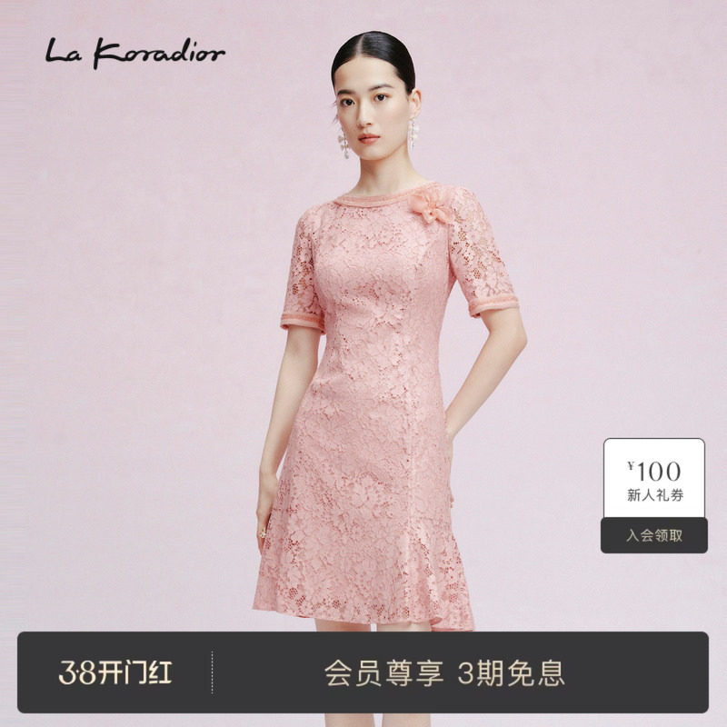 La Koradior拉珂蒂女夏季通勤新款蕾丝镂空连衣裙气质公主裙a字裙