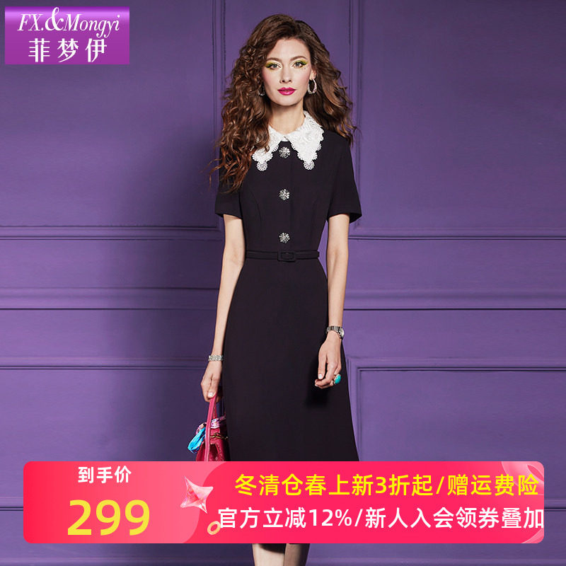 菲梦伊镂空蕾丝衬衫连衣裙女夏季法式赫本风简约通勤收腰A字裙子